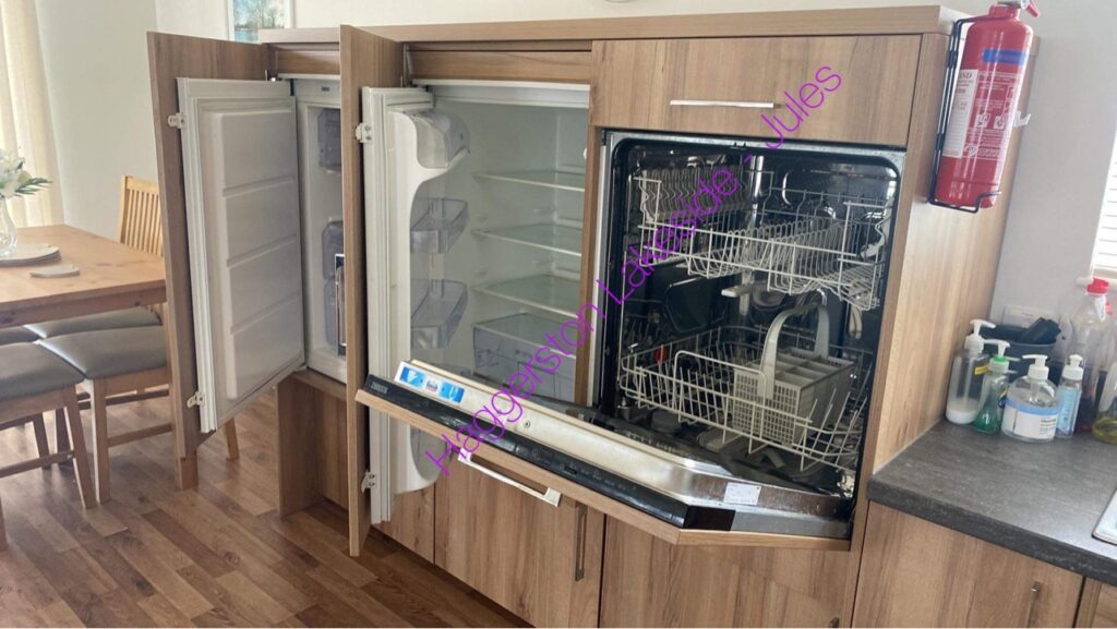 The kitchen is fully equipped with full size integrated fridge/freezer and all utensils required . It also has washing machine and dishwasher.
