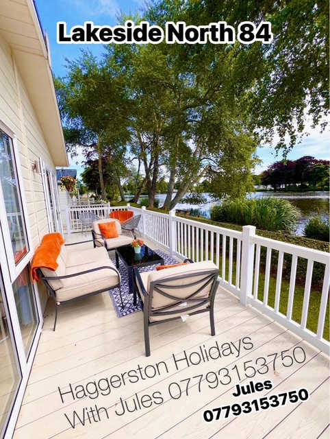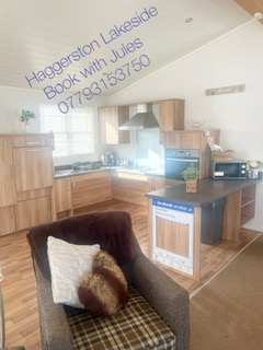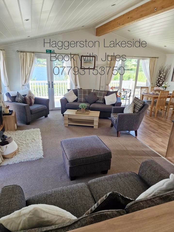Stunning 2 bedroom adapted lodge for hire at Haggerston Castle. Front row location overlooking the main lake with views across the park and complex.