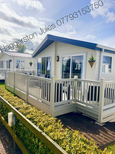 Stunning 3 bedroom Lodge (83) for hire at Haggerston Castle. Front row location overlooking the main site lake with views across the park and complex.